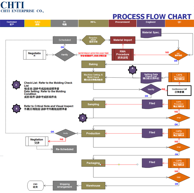 scheduling, molding, printing, assembly, inspection, product packaging and delivery as well as customer service so as to meet the requirements of ISO 9001 and ISO 14001 targets.